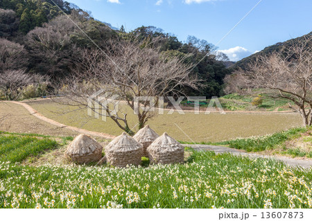 水仙と里山の風景