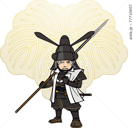 武装して槍を持って正面を向く藤堂高虎【3頭身・家紋】