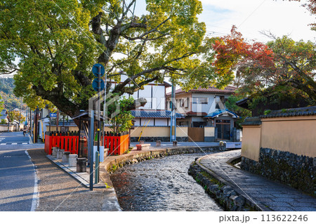 秋の京都上賀茂 藤木社のクスノキと社家の町並み