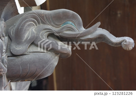 信州 松本の寺院 兎川寺 本堂向拝の獏の彫刻拡大 立川流藤森廣八の作品