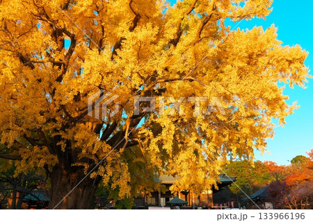 秋の遊行寺 青い空と黄金色の大銀杏