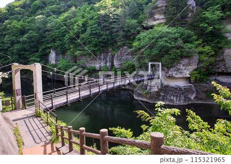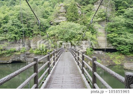 塔のへつりのつり橋、藤見橋、南会津、福島(超広角撮影)
