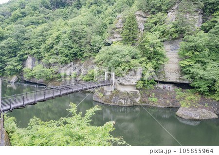 塔のへつりのつり橋、藤見橋、南会津、福島(超広角撮影)