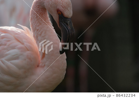 フラミンゴの仲間のコフラミンゴの上半身。右向き。