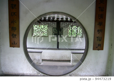 中国 蘇州の古典庭園 留園にみられる漏窓(ろうそう) 蘇州古典園林 世界遺産の中国式庭園