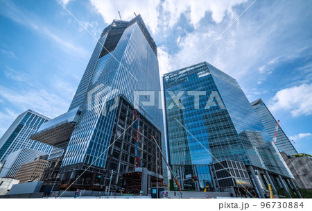 日本の東京都市景観8月15日。虎ノ門ヒルズなどを望む。新時代へ、希望の光