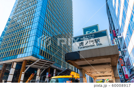 日本の東京都市景観 「虎ノ門」の交差点前にある虎ノ門駅(出入口3)