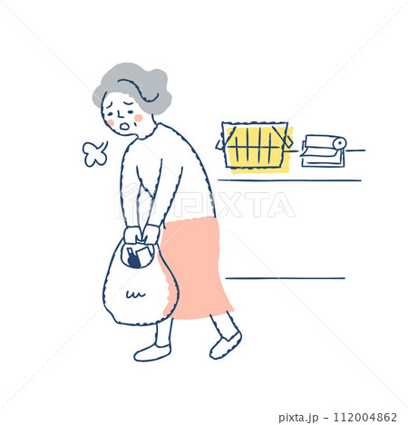 ペットボトルの蓋を開けられないシニア女性のイラスト