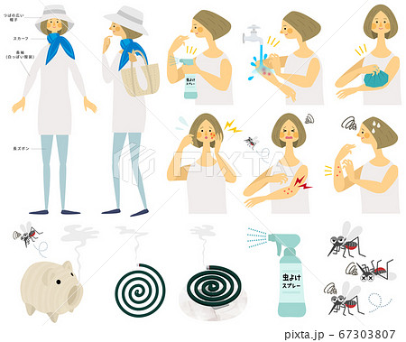 虫刺されと予防対策のイラストレーションセット