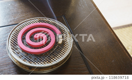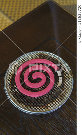 Mosquito coils with a spiral shape is surrounded by other brown objects