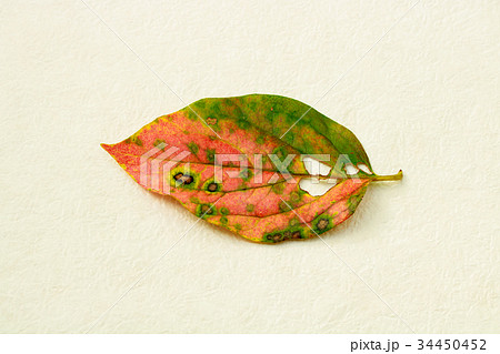 害虫に荒らされた柿の葉 自然と植物の写真素材