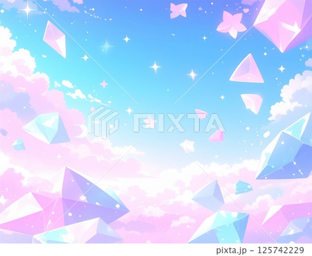パステルの空に舞う宝石と星 夢かわいい背景素材