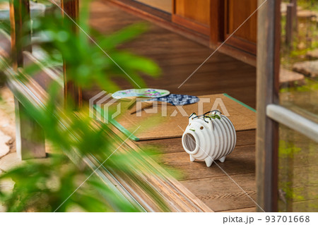 日本の夏の風物詩 蚊取り線香の煙を吐く蚊遣り豚