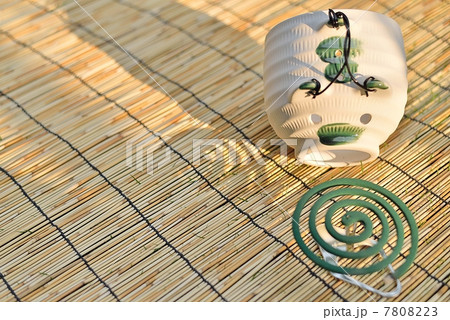 蚊取り線香のリースと豚の線香ホルダー、暑中見舞い夏素材