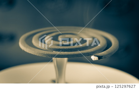燃焼している蚊取り線香 夏の風物詩 渦巻 防虫