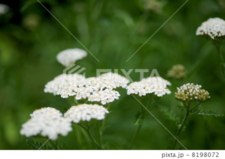 初夏の日本の公園に咲く白いノコギリソウの花