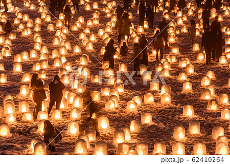 (日本の冬の風物詩・夜景) 横手の雪まつりの蛇の先川原