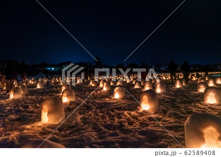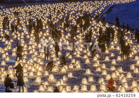 (日本の冬の風物詩 夜景) 蛇の崎河原のミニかまくら