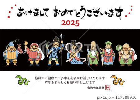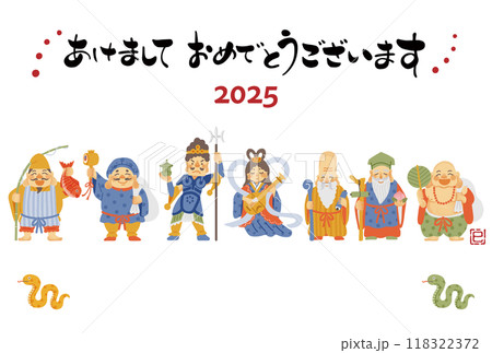 2025年巳年年賀状 シンプルでかわいい七福神のイラスト
