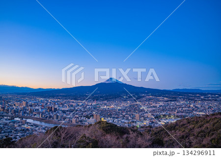 (静岡県)三島市の街灯りと富士山 夕景
