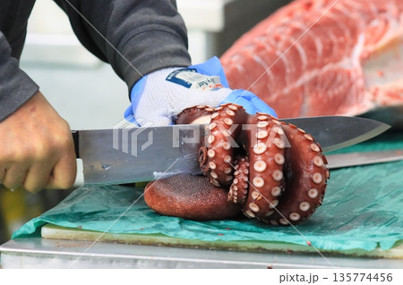 切り分けられるタコ