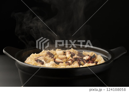 炊きたてで湯気の立った蛸の炊き込みご