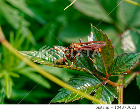 葉に止まる狩り蜂 スズメバチ科スズバチ
