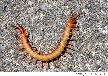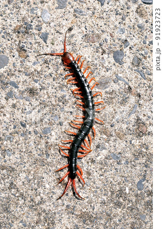 オオムカデをコンクリート背景で撮った