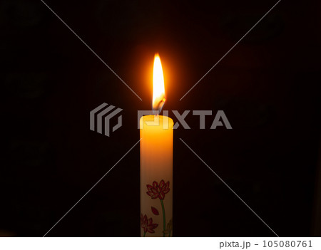 火の点いた蝋燭 燃えるろうそく 仏壇用のロウソク