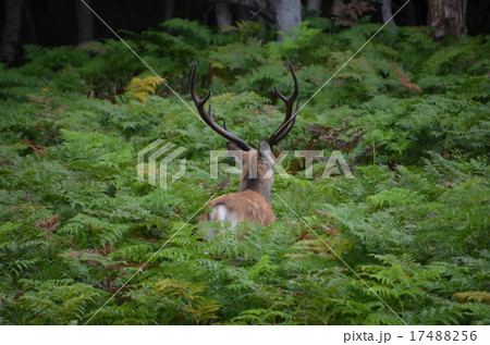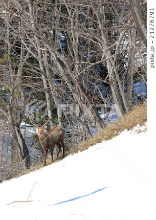野生のエゾ鹿 オスの角 北海道の大自然 遠景&縦位置
