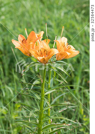 夏の野原のオレンジ色のユリ エゾスカシユリ