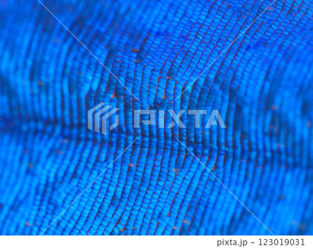 拡大したメネラウスモルフォの蝶の翅の表面 マクロ撮影