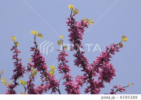 赤紫色の小さな花が枝にびっしりと咲く、春の使者ハナズオウ。