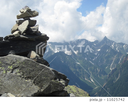 蝶槍のケルン越しに見る槍ヶ岳