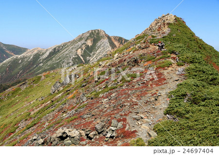 蝶ヶ岳稜線を行く登山者