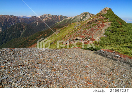 常念岳へと続く稜線