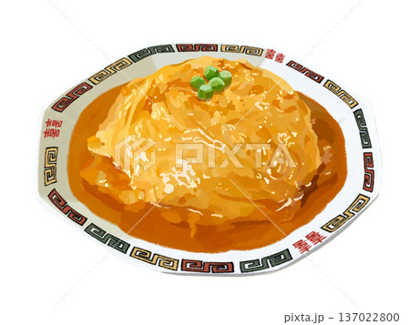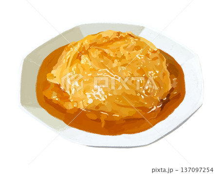 美味しそうな中華の天津飯の手描き水彩イラスト