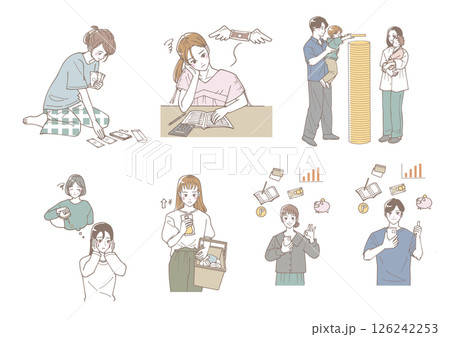 節約、家計についてのイラストセット