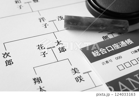 家系図と預金通帳とハンコ 財産 名義預金 贈与 相続
