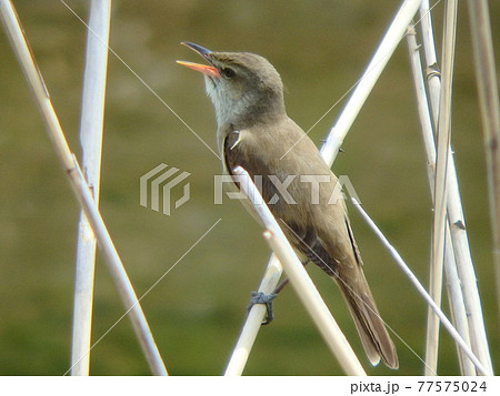 オオヨシキリがくちばしを大きく開けてさえずっている様子