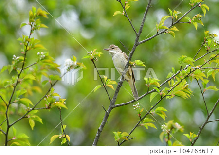 さえずっている時は口の中のオレンジがきれいなオオヨシキリ