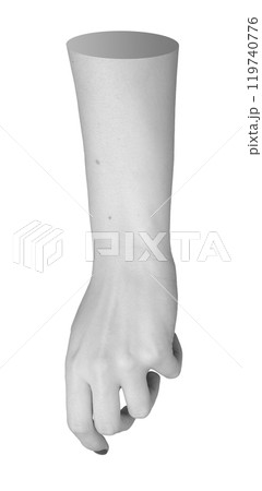 Grayscale hand and arm in relaxed, curled pose, isolated in artistic monochrome. Dorsal view of