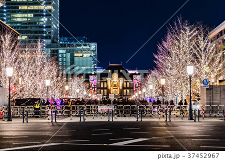 都市風景 東京駅中央口広場夜景 広場から行幸通りを望む