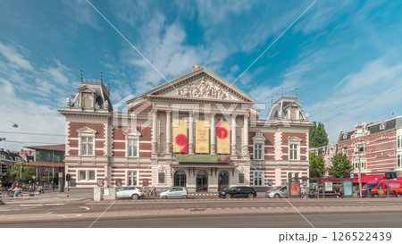 Hyperlapse of the Royal Concert Hall in Amsterdam, built in neoclassical style. Amsterdam, The Netherlands