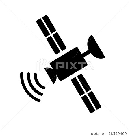 パラボラアンテナのシルエットアイコン。電波の送受信。ベクター。
