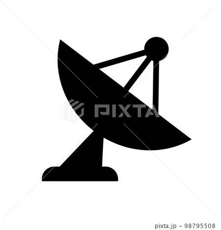 パラボラアンテナのシルエットアイコン。衛星放送。ベクター。