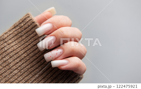 Woman's hands cutting fingernails with manicure scissors, focusing on careful trimming process