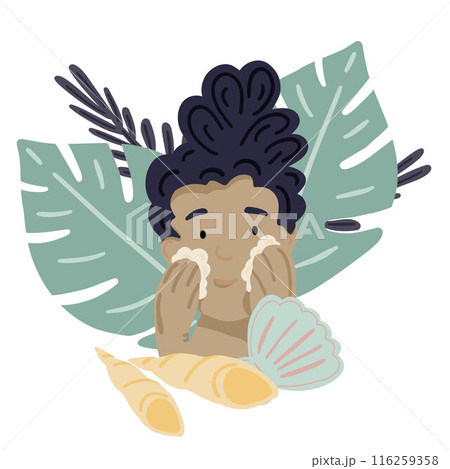 Body care. Female beauty. Makeup or skincare cosmetic procedures. Girl cleaning face with sponge. Daily spa routine. Person applying facial moisturizing cream. Vector woman portrait