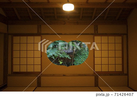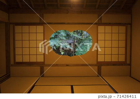 京都市西京区の竹の寺の茶室の猪目窓(地蔵院)