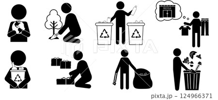 環境保護とリサイクル活動を表現するエコライフピクトグラムセット